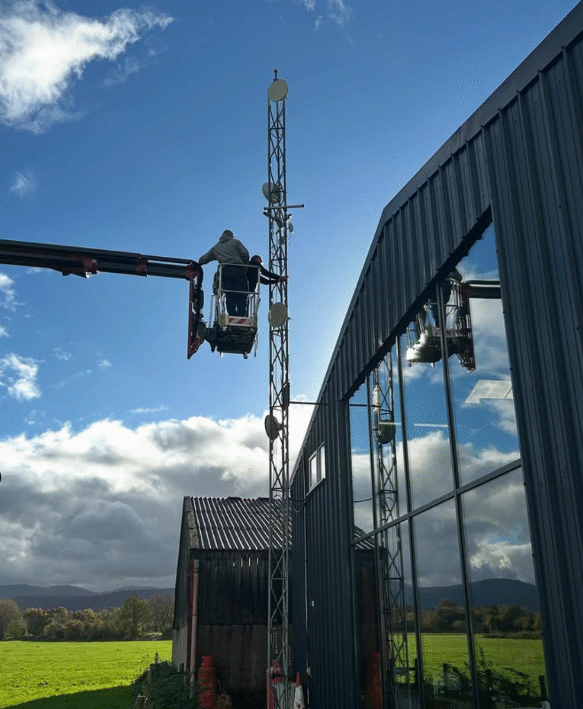 WISP (Wireless Internet Service Provider). Moving to new offices, we found we were now close to a fibre node, allowing us direct fibre access on a leased line. We built a 14 meter tower and now beam out high-speed internet to customers with poor connectivity.